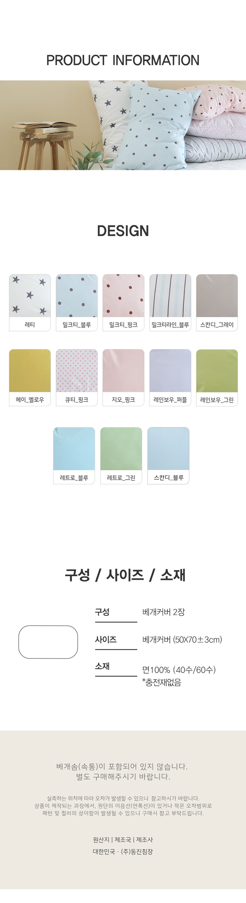 | 치수 | 베개커버(50X70±3cm) | ||