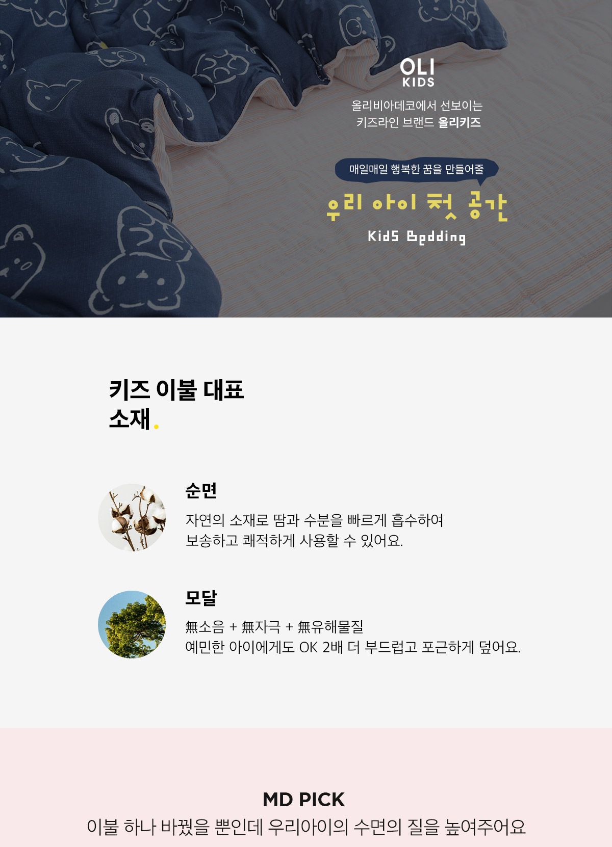 [올리키즈] 리틀버니 60수 아사 항균 패드(SS)